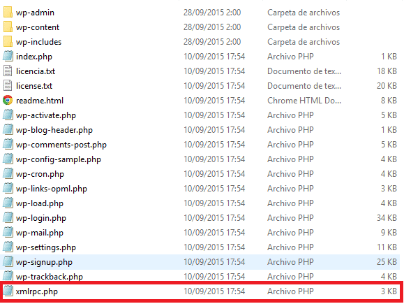 Lo primero que vamos a hacer es borrar o cambiar el nombre del archivo XMLRPC.PHP que encontraremos en la raíz de nuestra instalación: