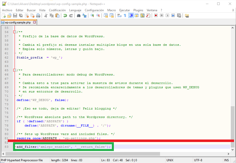 El primer método de protección consiste en realizar varias modificaciones en varios archivos de WordPress para que no se encuentre el archivo XMLRPC.PHP y también para desactivar las funcionalidades de XMLRPC para que WordPress no muestre ningún error por ello.