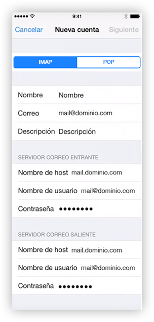 Administración > Preguntas Frecuentes - FAQ > Mail y Webmail > Como Configurar Correo en iPhone (IMAP)